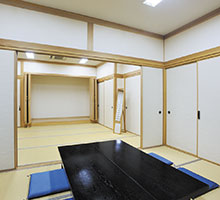 おくつろぎいただけるロビーや車椅子トイレを完備したバリアフリー斎場。 椅子席で30名から70名様まで収容できるホールと20名から50名様まで収容できるホールをご用意。 小・中規模のご葬儀のほか、法要にも最適です。